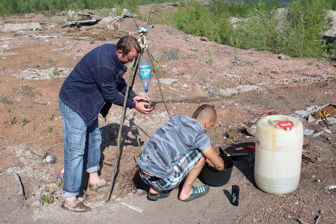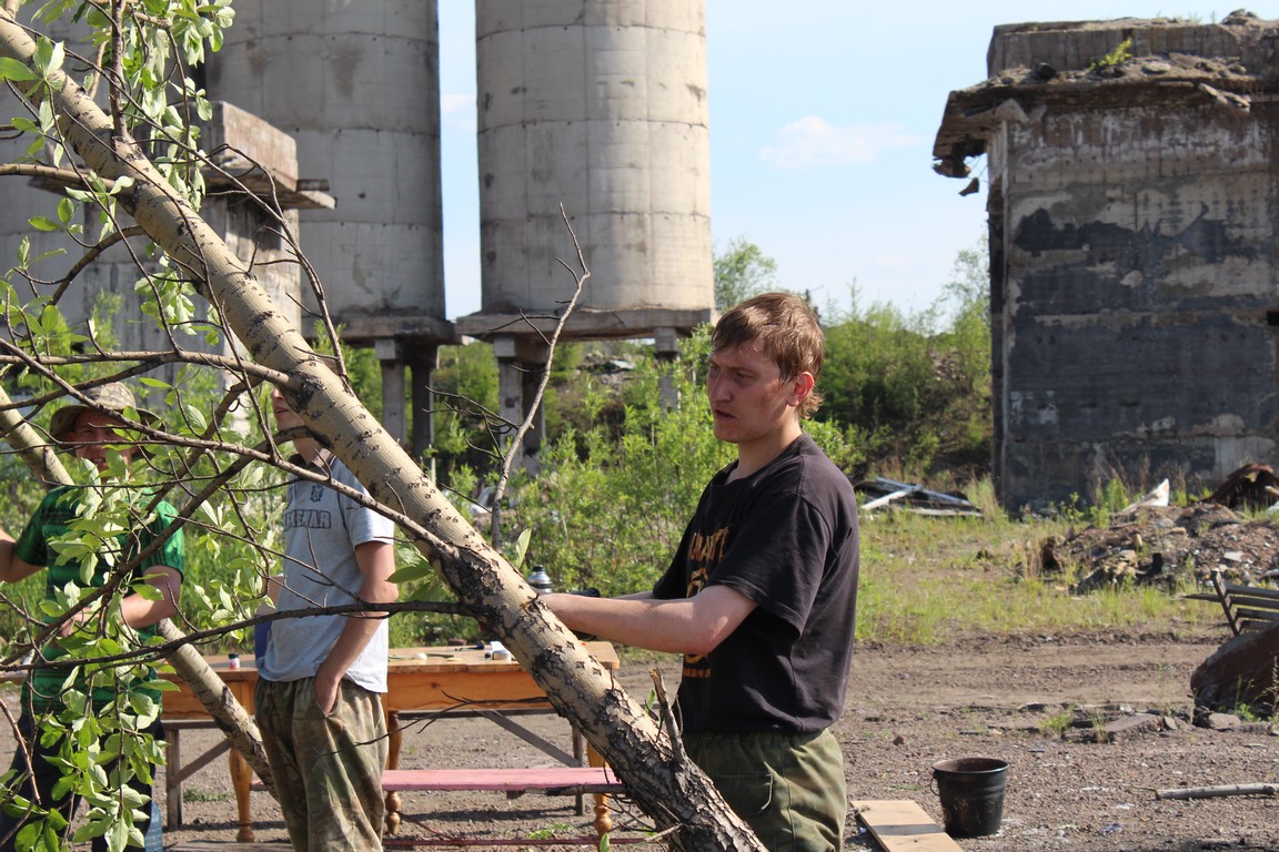 Первое, что удалось съесть на этой земле – лиственницу. По рекомендации Кирилла были выбраны самые «вкусные» и кислые оконечности, но желудок просил чего-то нашего. «Нашим» из подвезенных ресурсов были определены рожки с тушняком «по-сталкерски»: рожки и тушенка в масштабе 1-к-1 в котелки над костром исключительно из оконных рам с краской с добавлением гари и местной земли от наскоро сделанной палки-мешалки.